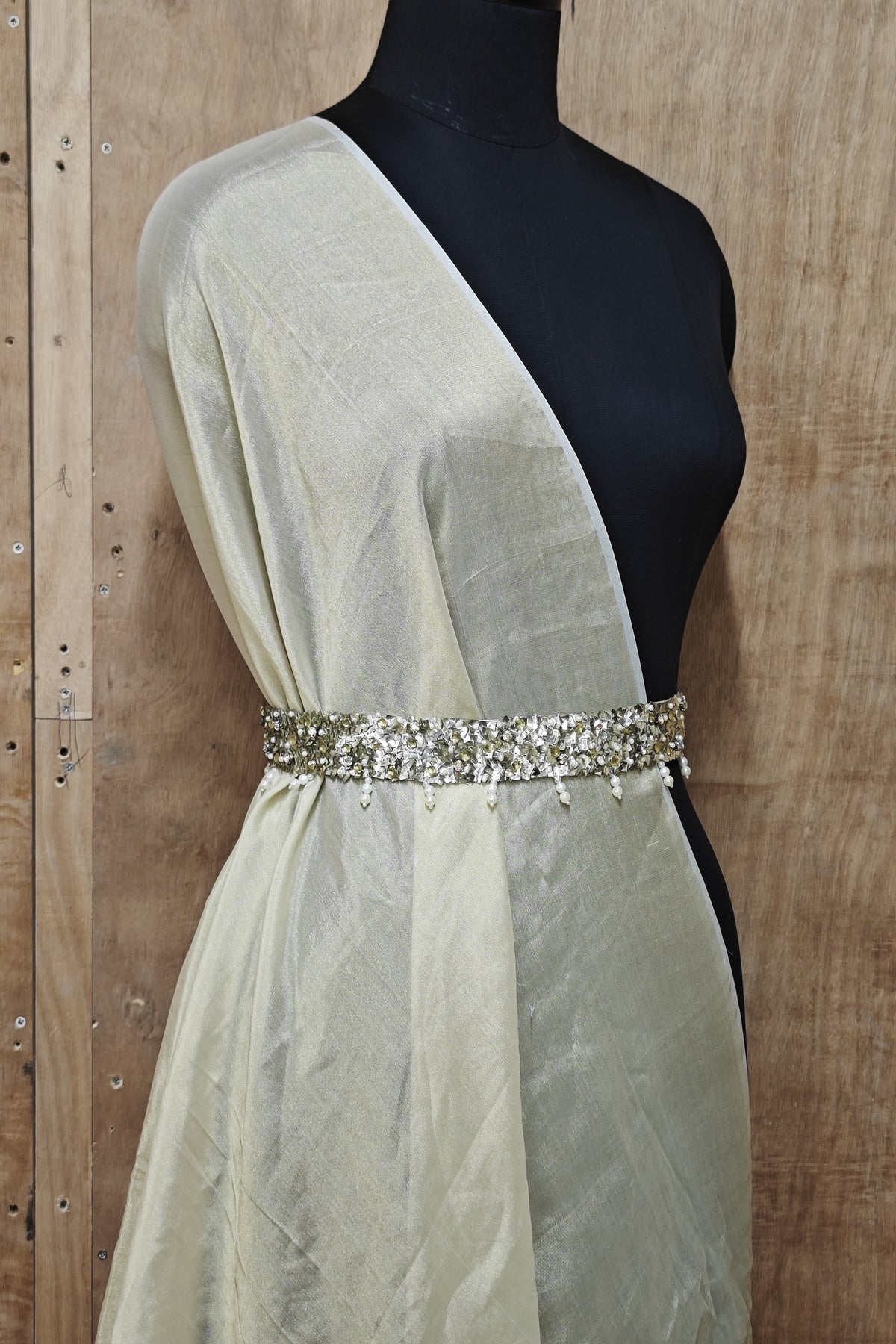 Glamorous gold sequin belt that adds shimmering sophistication to any ensemble.